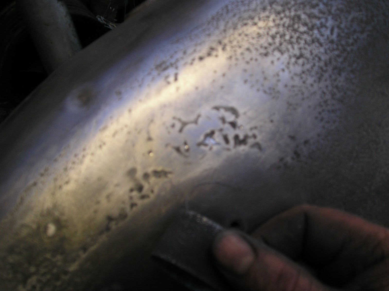 The fuel tank was treated to the Fully Monty....Wire wheeled from multi-angle approach....Oooooch....
